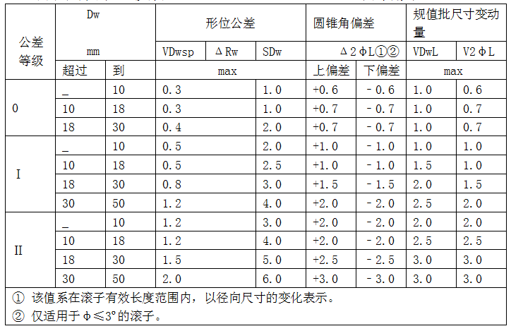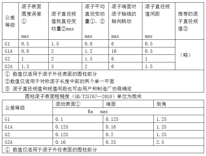 圓柱滾子直徑公差和軸向跳動(dòng)(GB/T25767—2010)單位為微米