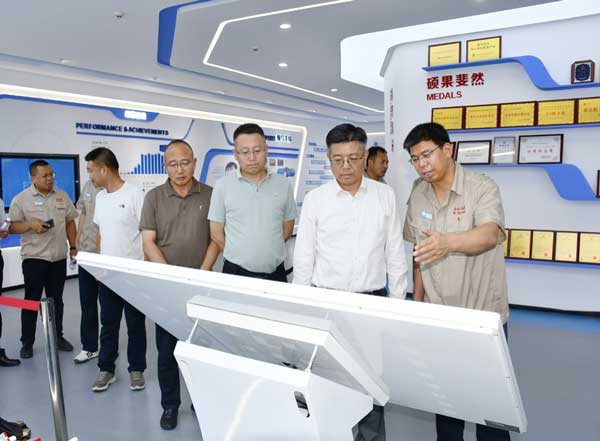 座談結(jié)束后,在公司領(lǐng)導(dǎo)陪同下,馬旭耀一行參觀了公司數(shù)字展廳、信息化監(jiān)控平臺(tái)、產(chǎn)品生產(chǎn)現(xiàn)場(chǎng)、質(zhì)量管理中心計(jì)量室及技術(shù)研發(fā)中心軸承壽命試驗(yàn)室。