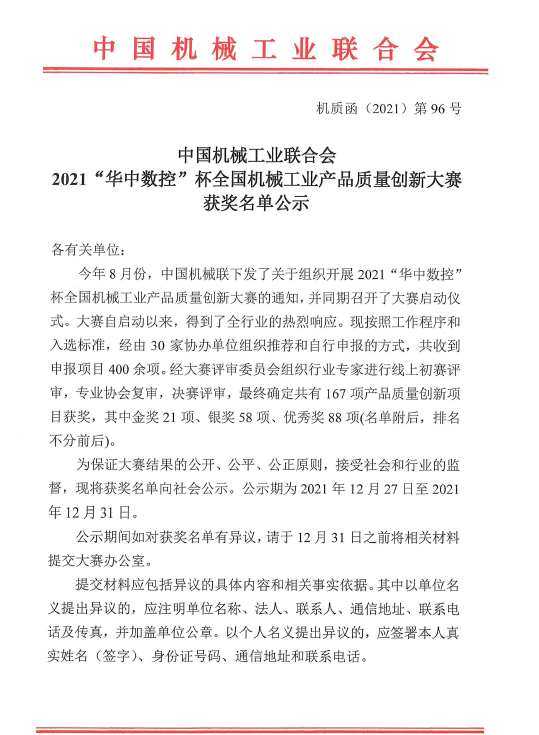 為推進(jìn)實(shí)施質(zhì)量強(qiáng)國戰(zhàn)略,深入貫徹落實(shí)《中共中央國務(wù)院關(guān)于開展質(zhì)量提升行動的指導(dǎo)意見》、工信部等六部門《關(guān)于加快培育發(fā)展制造業(yè)優(yōu)質(zhì)企業(yè)的指導(dǎo)意見》和工信部《關(guān)于做好2021年工業(yè)質(zhì)量品牌建設(shè)工作的通知》部署要求,由中國機(jī)械工業(yè)聯(lián)合會主辦的“2021首屆全國機(jī)械工業(yè)產(chǎn)品質(zhì)量創(chuàng)新大賽”正式啟動。