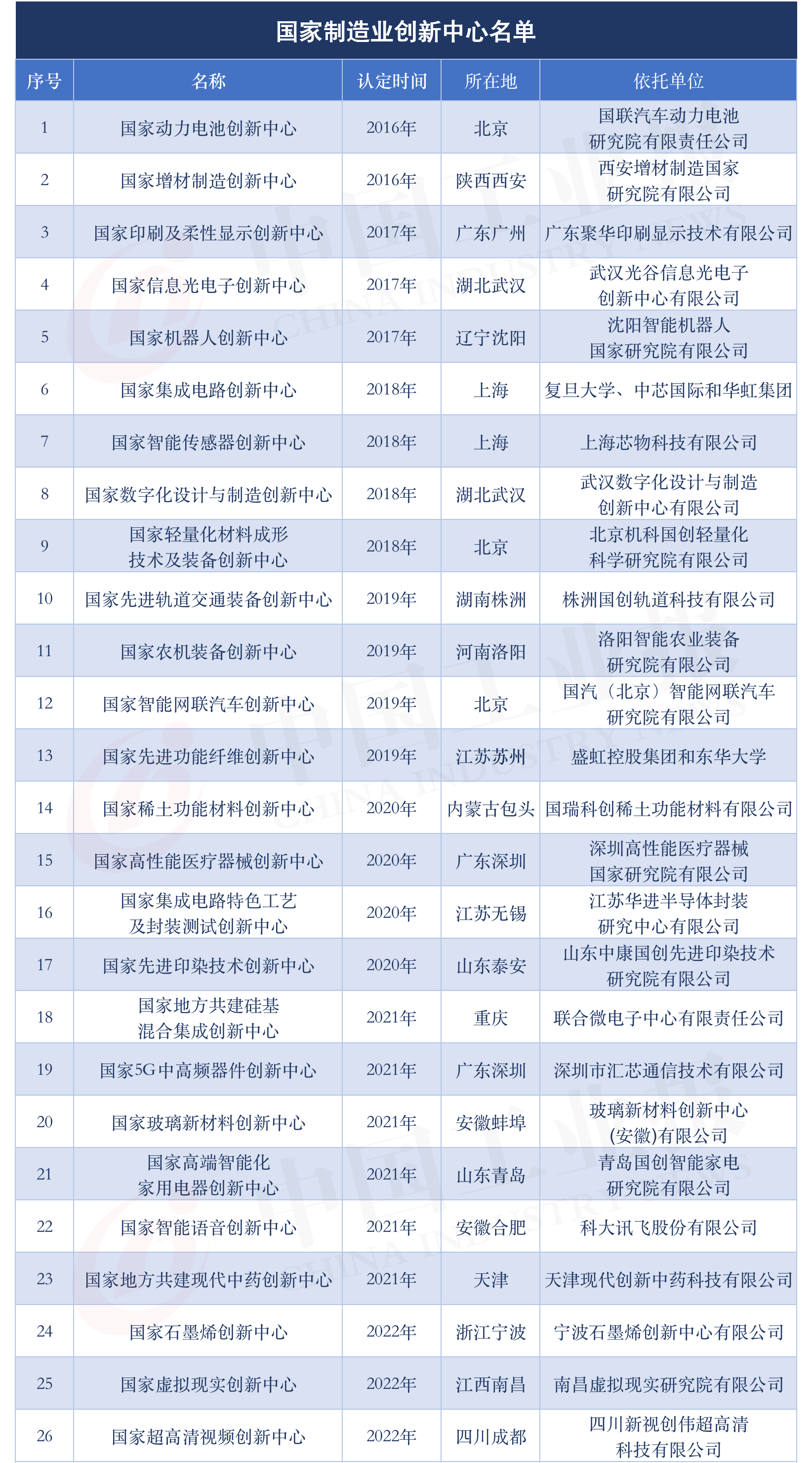 本文梳理了26家國家制造業(yè)創(chuàng)新中心的概況,以饗讀者。